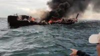 Kapal KM Mutiara Terbakar di Perairan Inhil, Dua ABK Alami Luka Bakar.