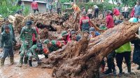Anggota Koramil 05/Reban Bantu Bersihkan Material Akibat Bencana Banjir Bandang